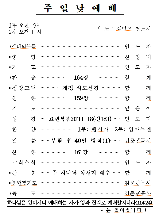 4월 15일 예배순서 및 교회소식