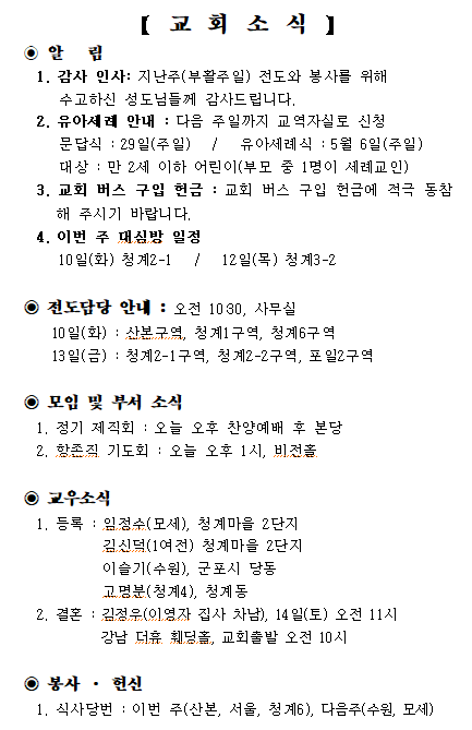 4월 8일 예배순서 및 교회소식