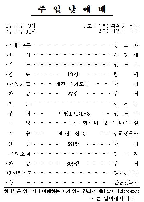 9월 9일 예배순서 및 교회소식