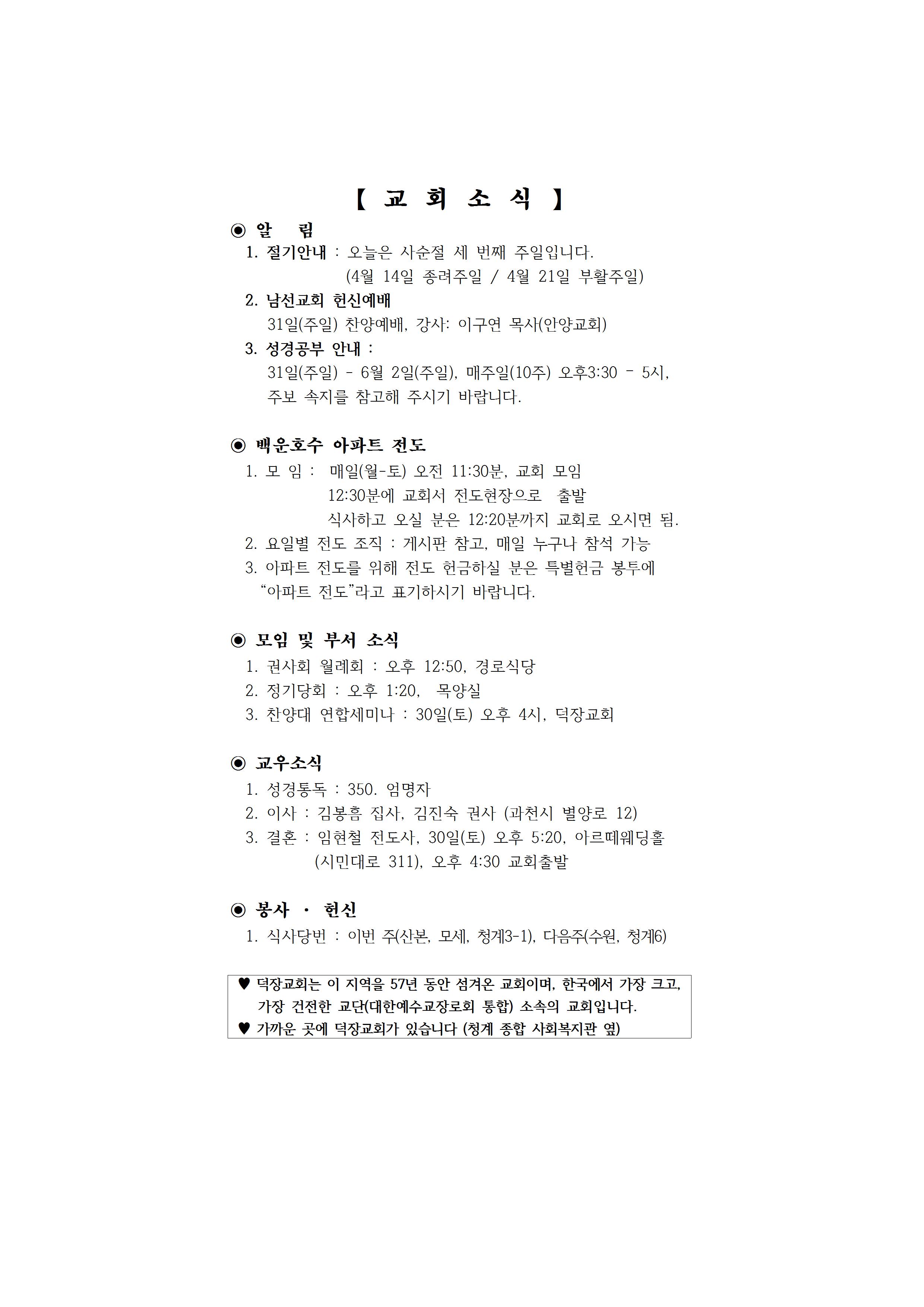 4월 14일 예배순서 및 교회소식