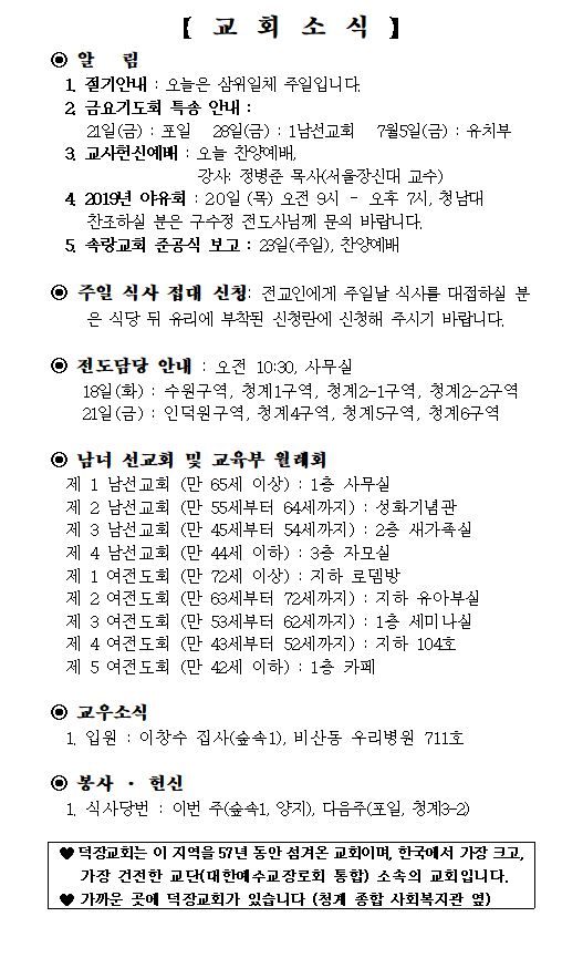 6월 16일 예배순서 및 교회소식