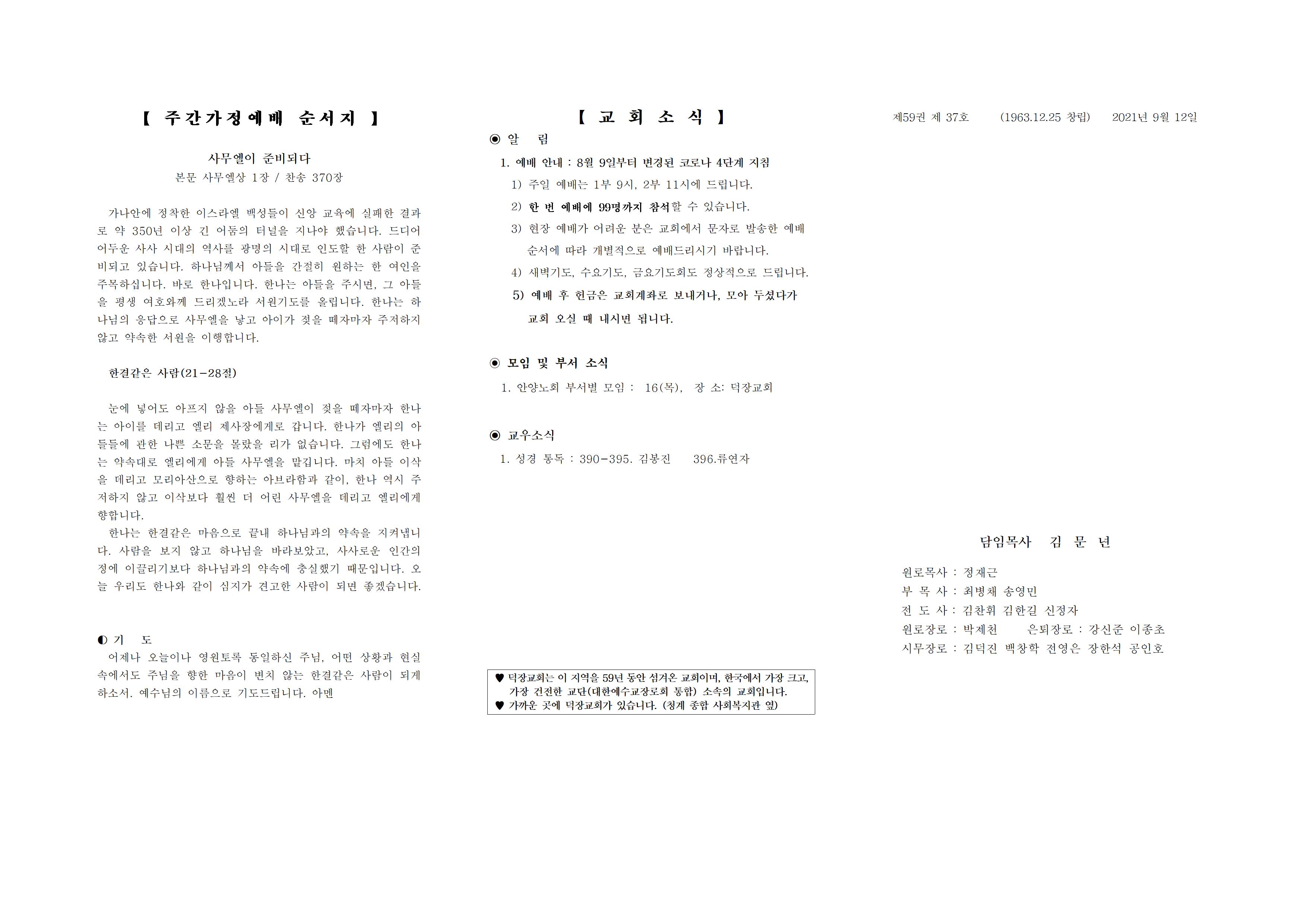 9월 5일 예배순서 및 교회소식