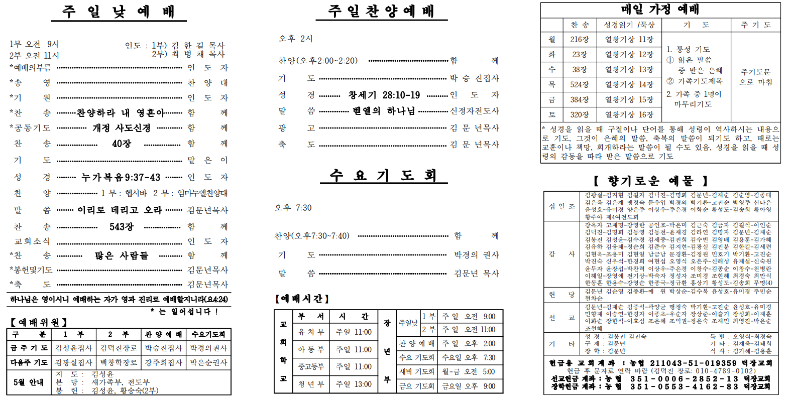 5월 19일 예배순서 및 교회소식