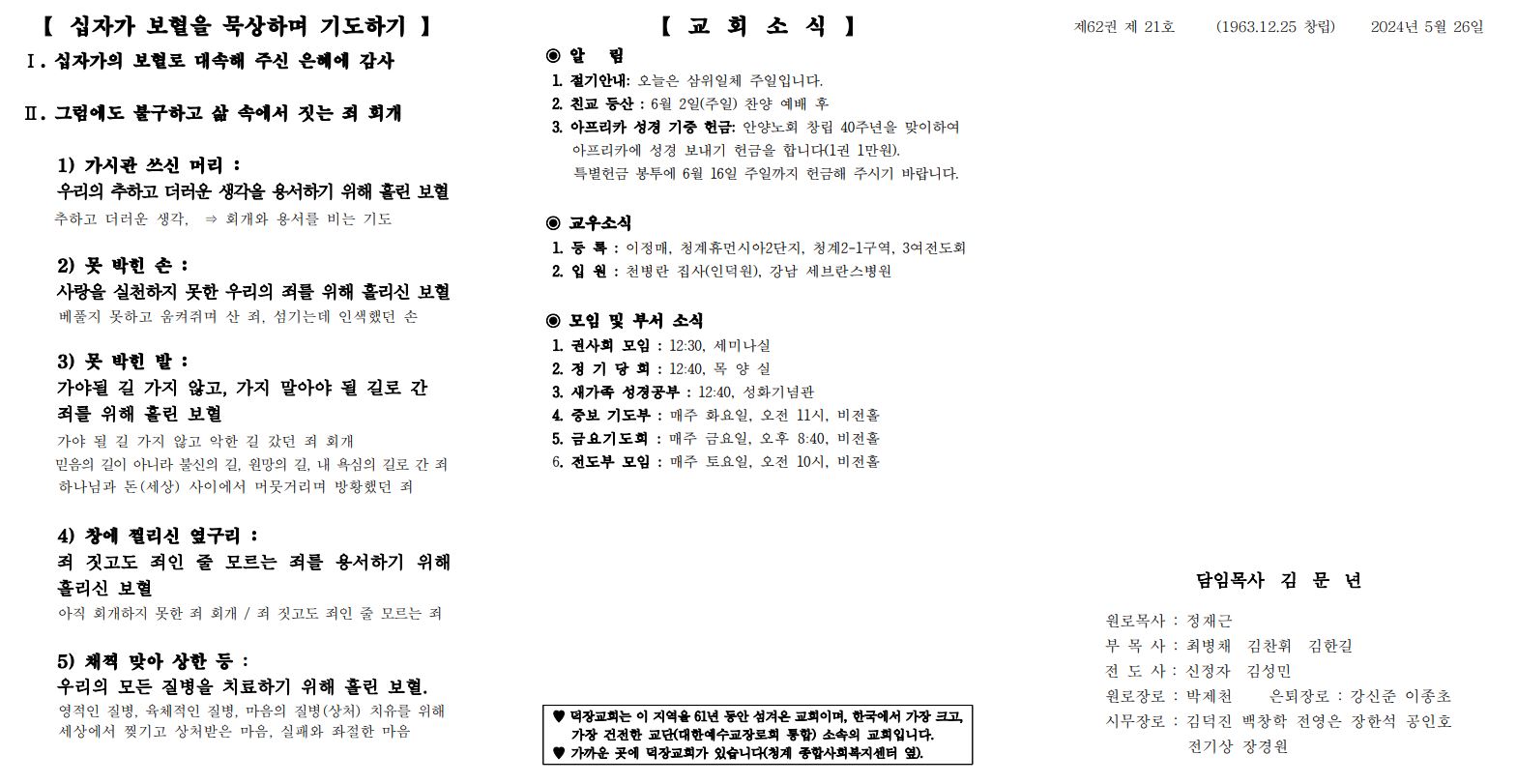 5월 26일 예배순서 및 교회소식