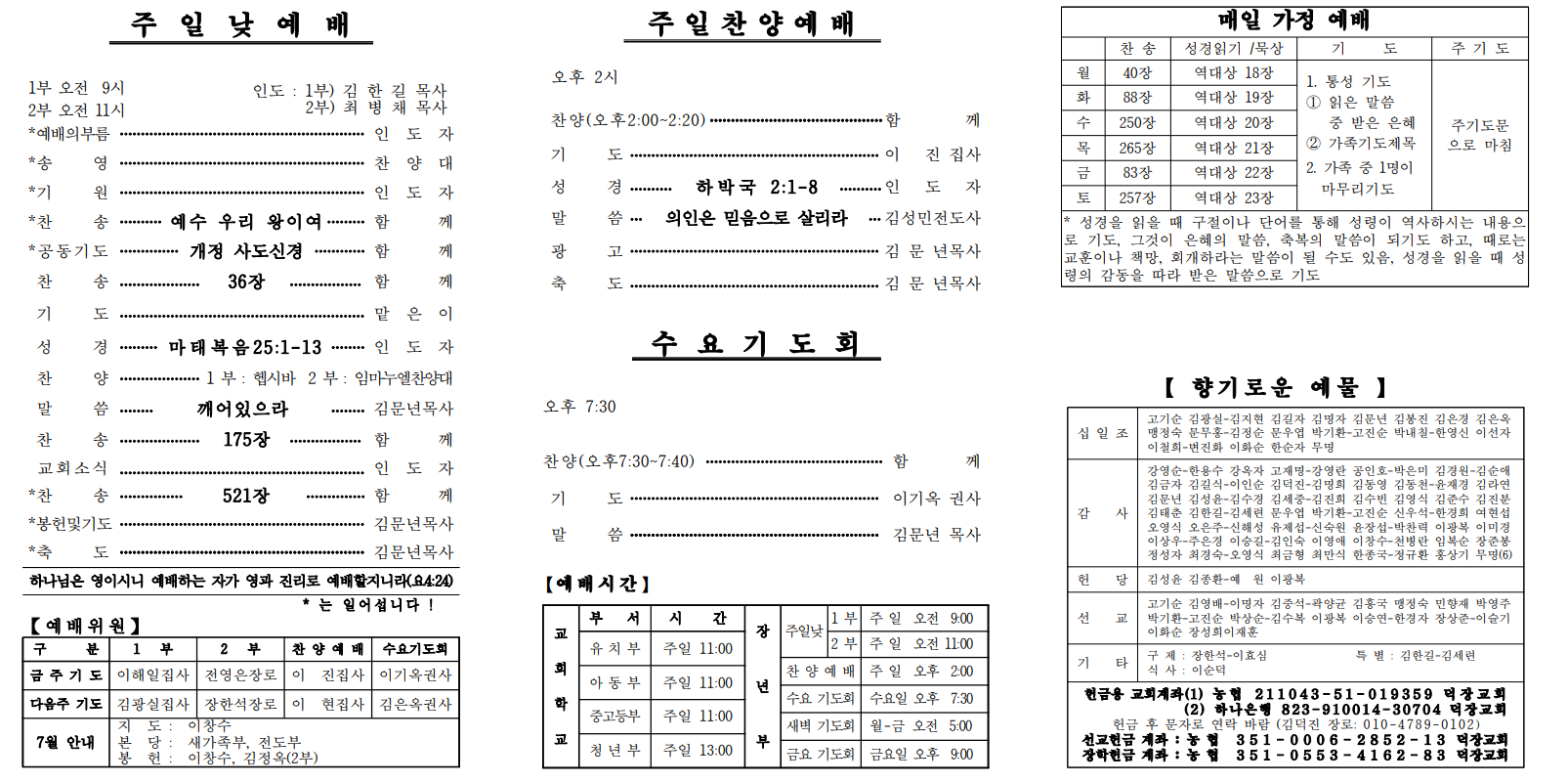 7월 21일 예배순서 및 교회소식