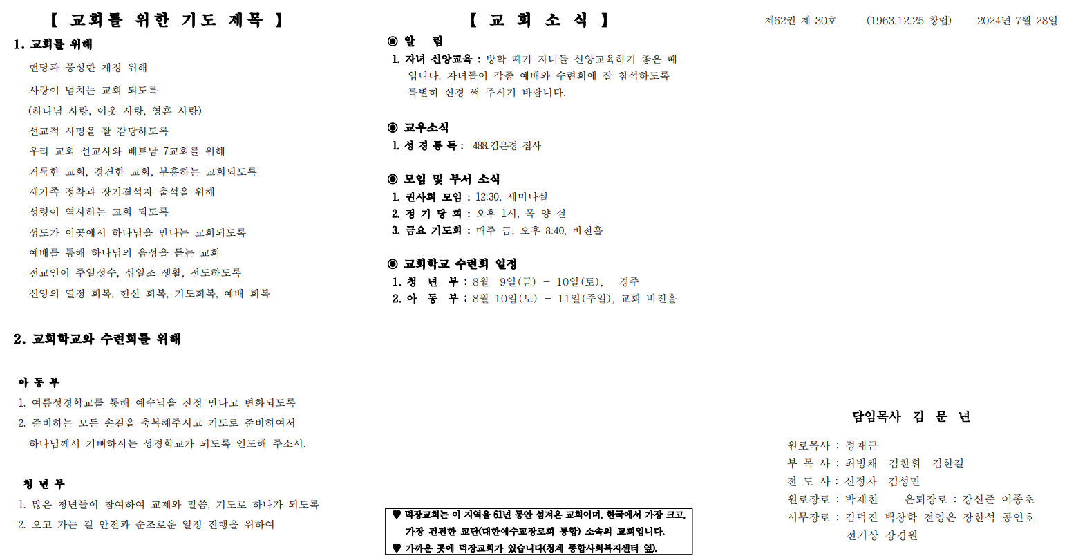 7월 28일 예배순서 및 교회소식