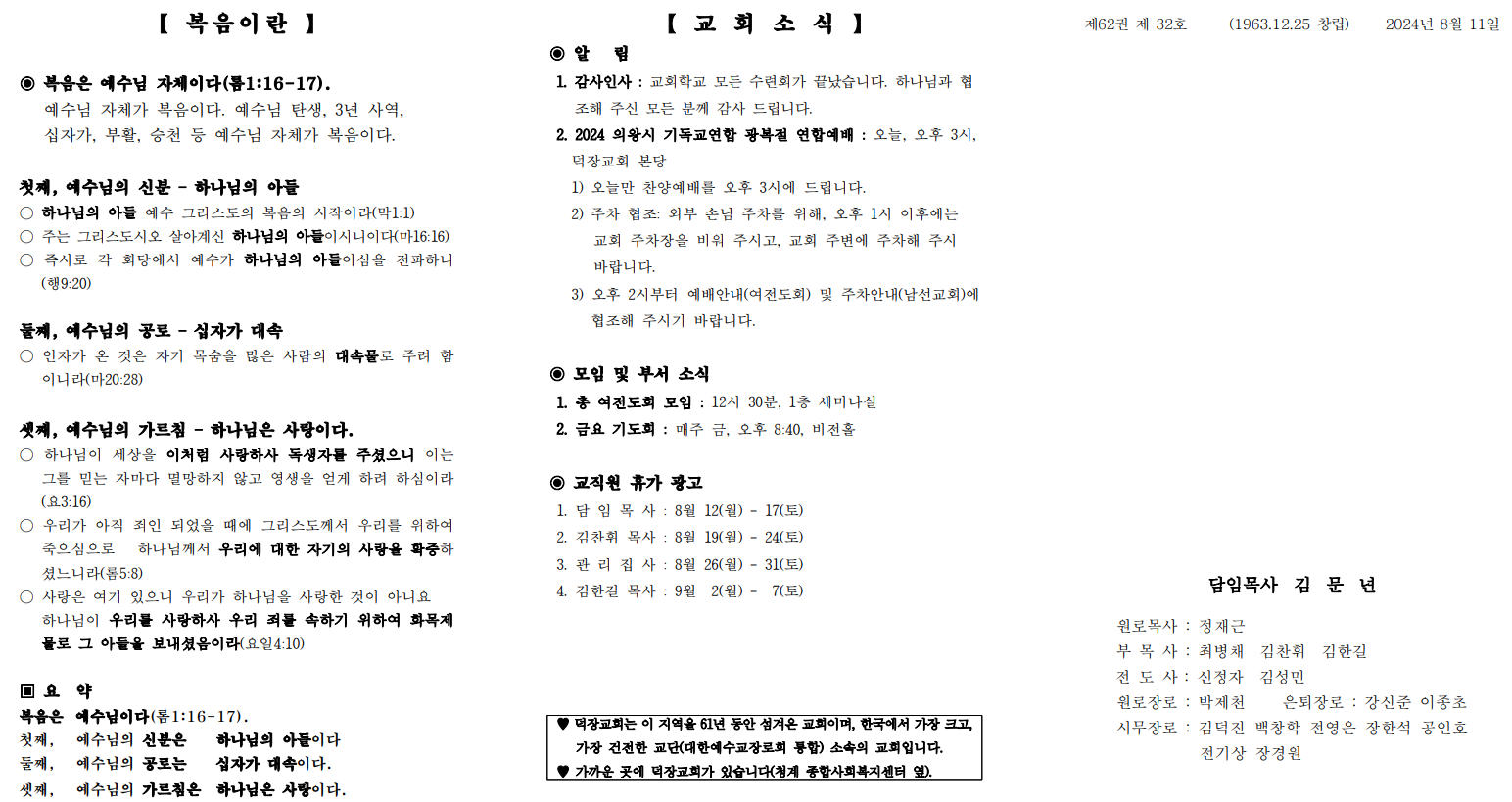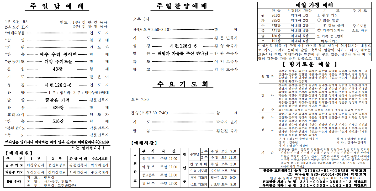 8월 11일 예배순서 및 교회소식