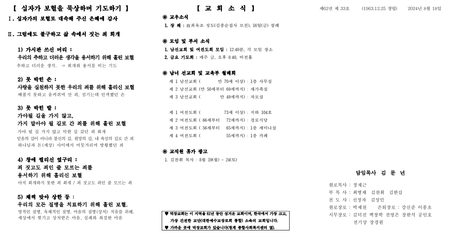 8월 18일 예배순서 및 교회소식