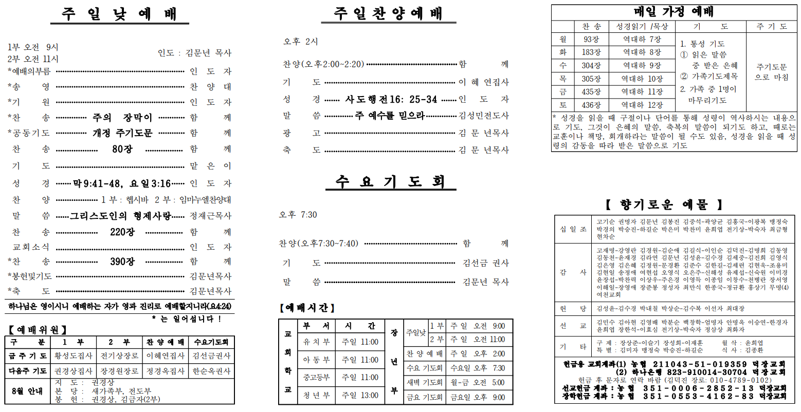 8월 11일 예배순서 및 교회소식