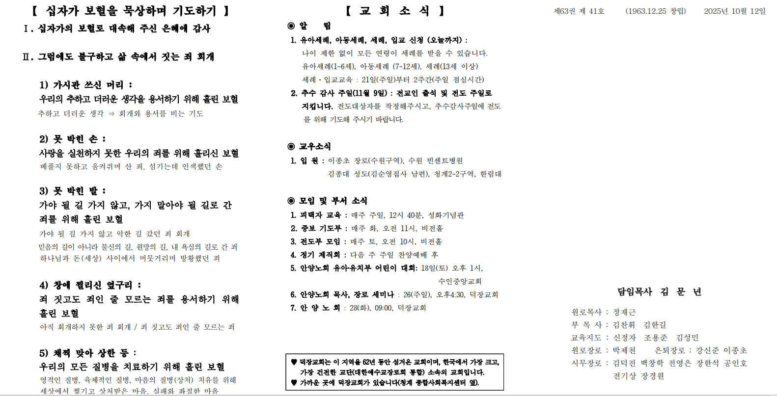 10월 12일 예배순서 및 교회소식