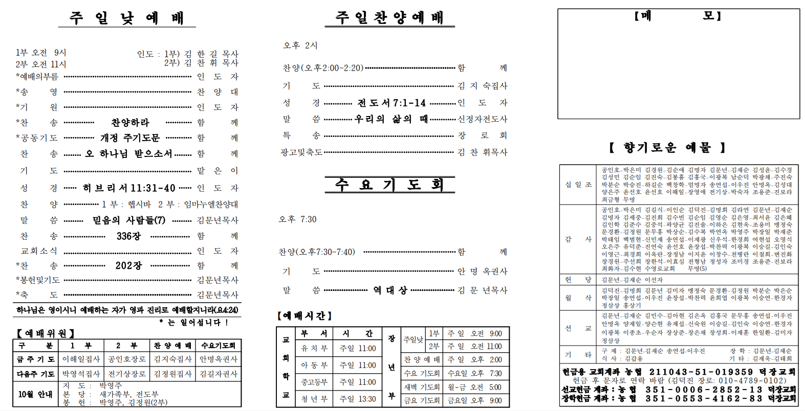 10월 19일 예배순서 및 교회소식