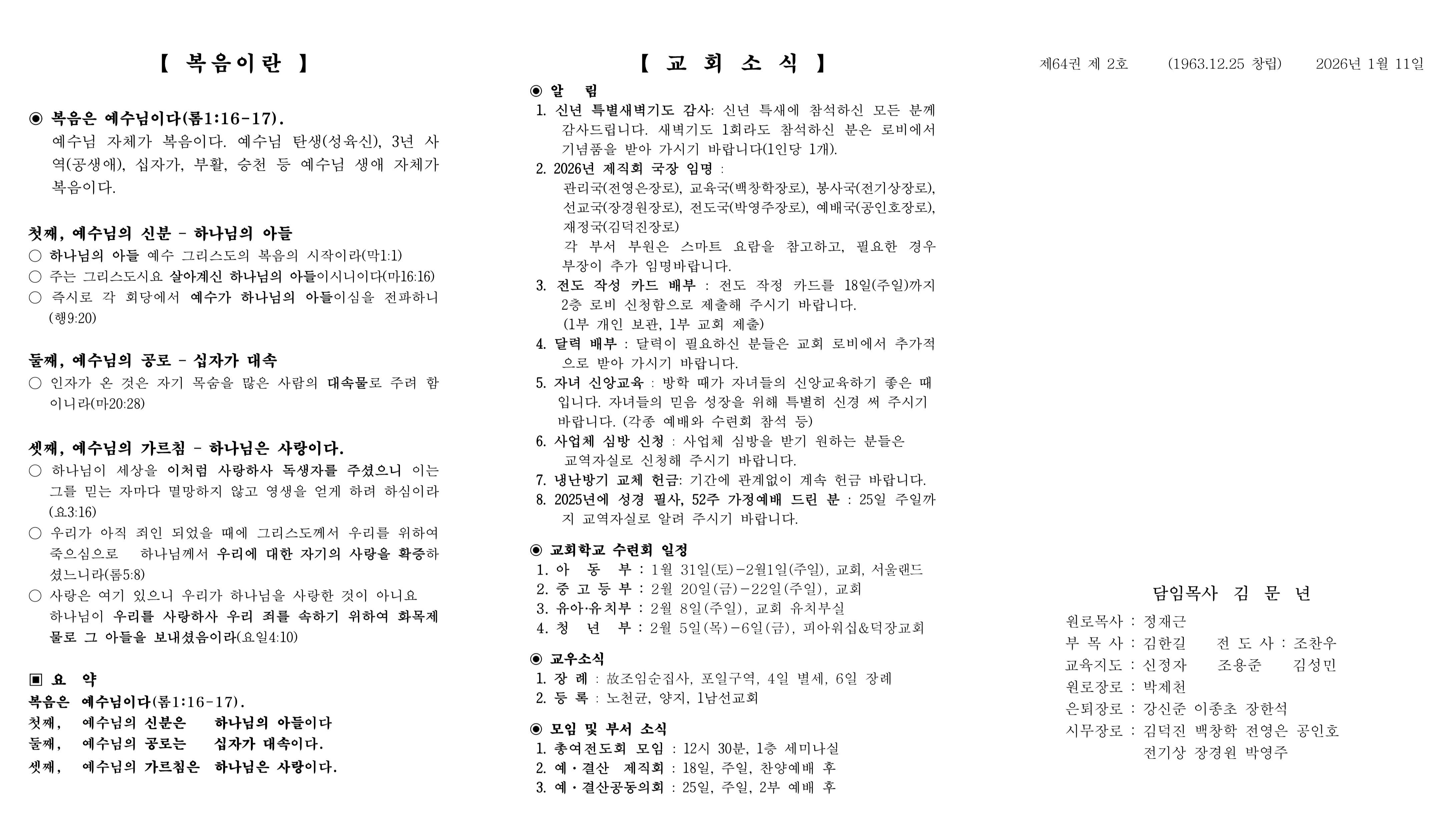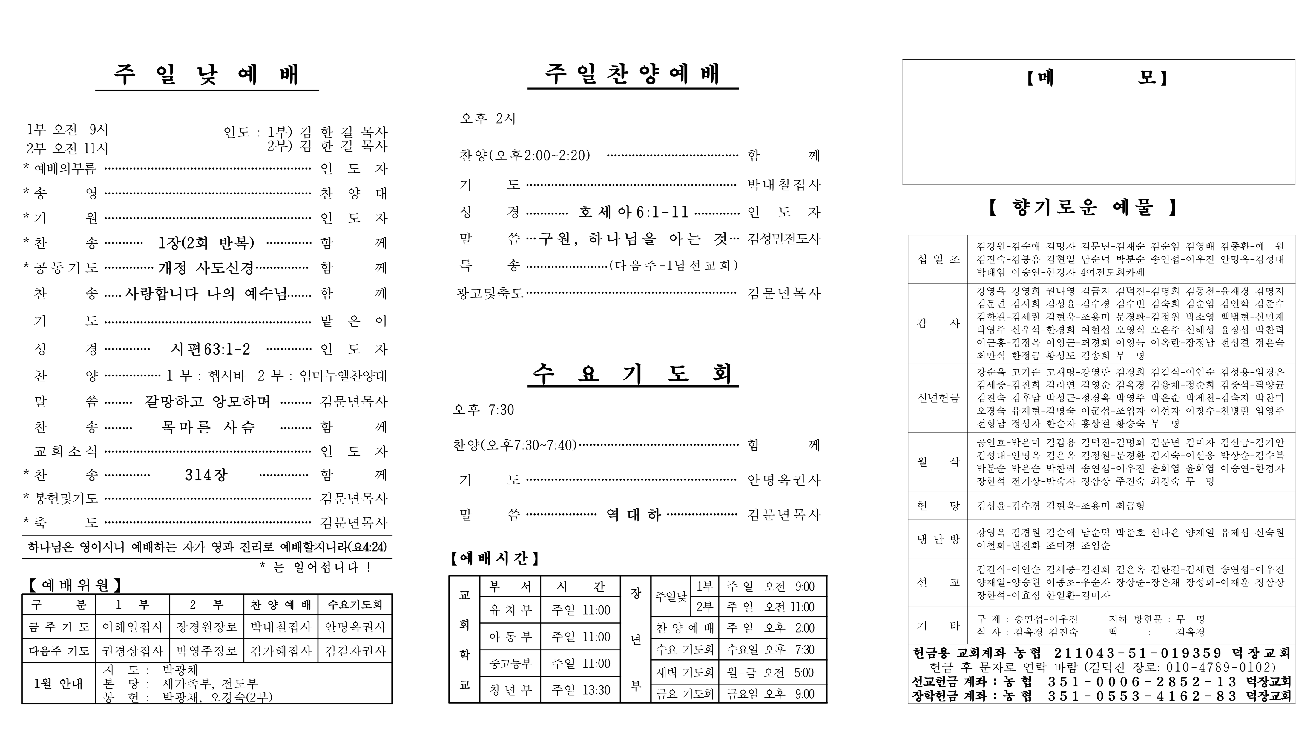 1월 11일 예배순서 및 교회소식