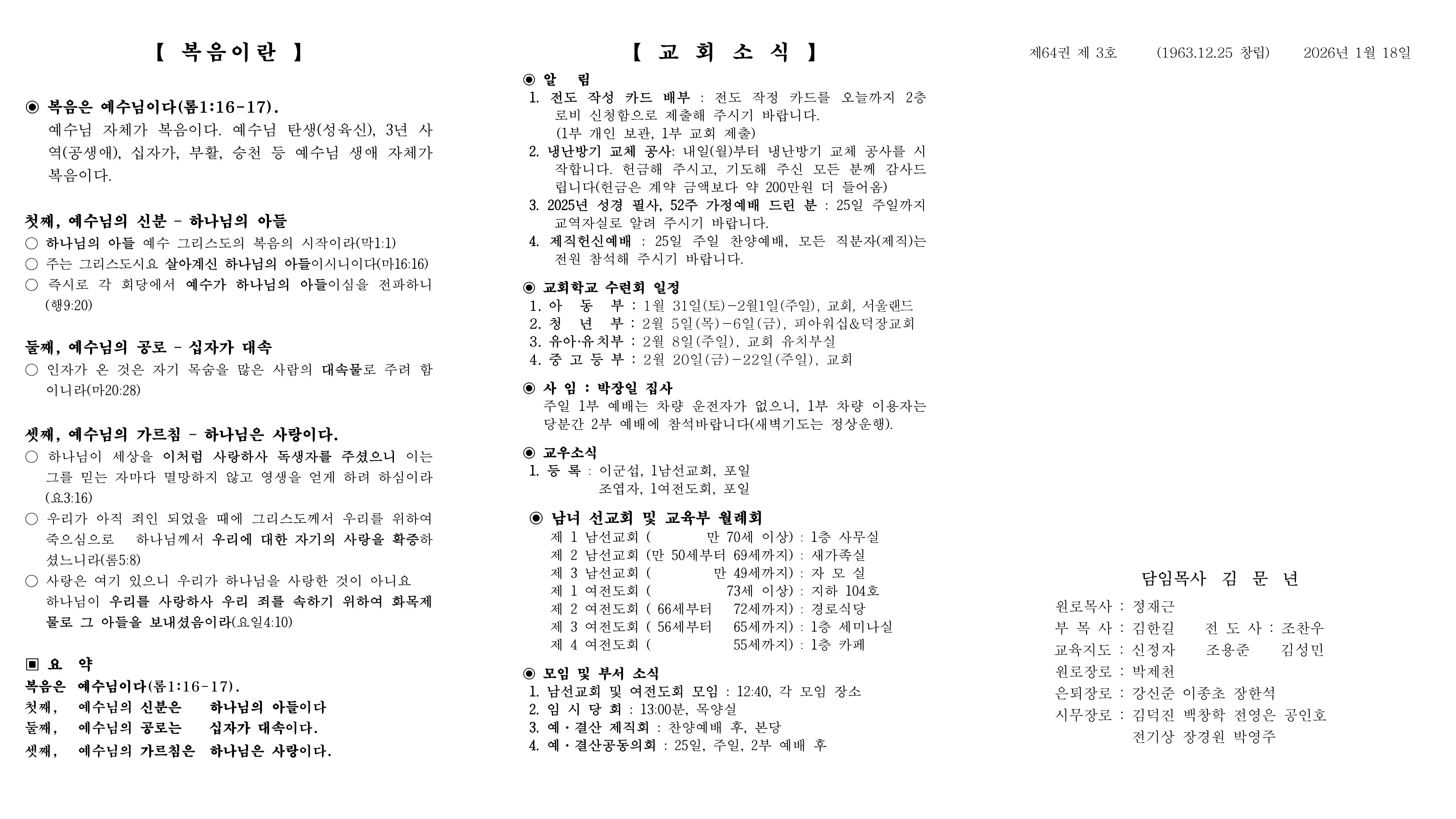 1월 25일 예배순서 및 교회소식