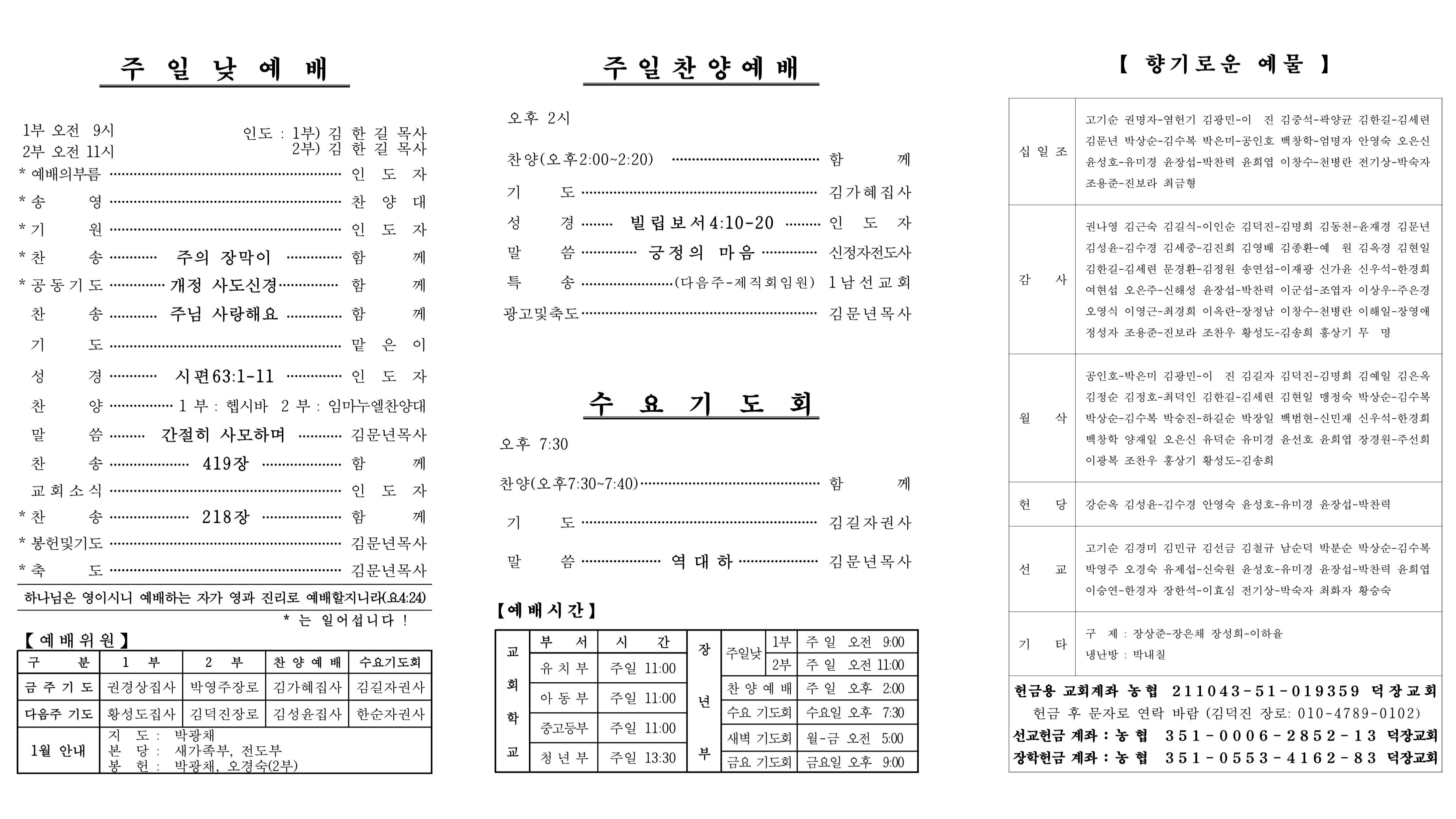 1월 11일 예배순서 및 교회소식